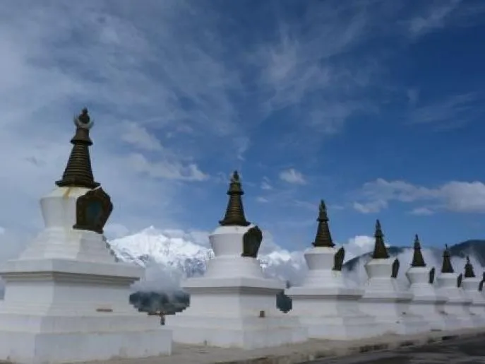 Sie reisen zu einigen Aussichtspunkten, an denen Stupas aufgestellt sind. Von hier aus können Sie die vielen Gipfel des Meili-Schneebergs bewundern, den die Tibeter besser als Kawa Karpo kennen. Dieser beeindruckende Berg ist einer der heiligsten Berge für Tibeter, und jedes Jahr kommen viele Pilger, um die Kora zu umrunden. Diese Kora dauert 12 Tage, das werden wir nicht tun. Stattdessen unternehmen wir einen Spaziergang zum Minyong-Gletscher am Fuß von Kawa Karpo. Sie steigen ab und gelangen über tibetische Dörfer, in denen sich verschiedene Weinberge befinden, in die Schlucht des Mekong-Flusses. Anschließend machen Sie eine anstrengende Wanderung von 2-3 Stunden zum Fuß des Gletschers. Es ist ein steiler Anstieg, aber für jeden mit durchschnittlicher Fitness gut machbar. Auf Wunsch können Sie Pferde mieten, um nach oben zu gelangen. Am Gletscher befindet sich ein kleines Kloster. Von hier aus können Sie in einer halben Stunde weitersteigen (steiler Anstieg!), um einen schönen Blick auf den Gletscher zu genießen. Danach steigen Sie ab und können noch das Feilai Si Kloster besuchen (der traditionelle Ausgangspunkt der Kora).