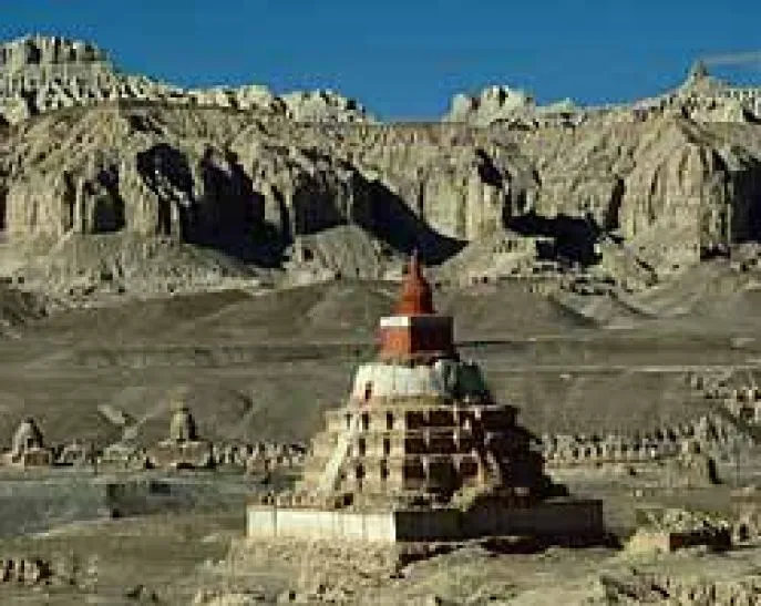 Sie fahren ins Städtchen Tsada (auch bekannt als Zanda / Tsamda), die Ausgangsbasis, um die beeindruckenden Ruinen der ehemaligen Hauptstädte des Guge-Königreichs zu besuchen. Die Umgebung ist wunderschön, eine bizarre Mondlandschaft, durch die der Sutlej-Fluss schlängelt. In dieser Gegend lag einst das berühmte Reich von Guge mit den Hauptstädten Tsaparang und Tholing.
