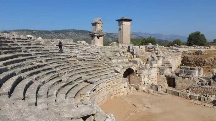 Xantos war die erste Hauptstadt Lykiens und eine der wichtigsten Städte des lykienden Wettbewerbs. Die Lyker waren eine der ersten Zivilisationen des Mittelmeers und liebten ihre Unabhängigkeit. So gründeten sie die erste demokratische Union in der Geschichte, genannt "Lykische Liga". Alte Schriftsteller wie Homer und Herodot erzählen die Geschichten von mutigen lykischen Kriegern. Die Xantier verübten während der Perserzeit im Jahr 545 v. Chr. Massenselbstmorde. Sie setzten alles in Brand und stürzten sich in die Flammen. Hier finden Sie noch viele Überreste, darunter ein Amphitheater, Tore, Tempel und alte Stadtmauern.