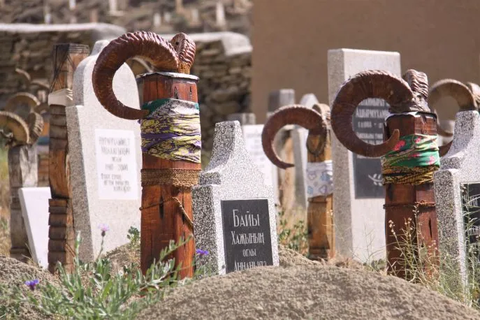 Am Nachmittag unternehmen Sie einen weiteren schönen Spaziergang durch diese ungewöhnlichen Landschaften, umgeben von weißen und grauen Bergen. Zurück beim Jeep fahren Sie teilweise durch das Flussbett des Sumbar Flusses entlang von kleinen Siedlungen wie dem Dorf Madau zu den Überresten der Seidenstraßenstadt Dehistan. Dort schlagen Sie Ihr Camp auf. Den Rest des Tages haben Sie Zeit, Dehistan auf eigene Faust zu erkunden.