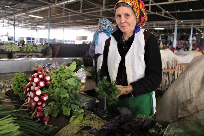 Am farbenprächtigsten ist der riesige Teppichbasar. Hier finden Sie besonders Frauen in geblümten Kleidern mit bunten Kopftüchern, die auf riesigen Teppichstapeln sitzen. Große, kleine, günstige, teure, antike und Fabrik-Teppiche, hier finden Sie alles. Möchten Sie sich eine Jacke oder eine Pelzmütze kaufen, turkmenische Juwelen oder sowjetische Souvenirs? Alles möglich. Und natürlich eine schier unendliche Menge an Gemüse, Obst, frischem Brot, Milchprodukten und günstigen Textilien sowie Produkten aus China.