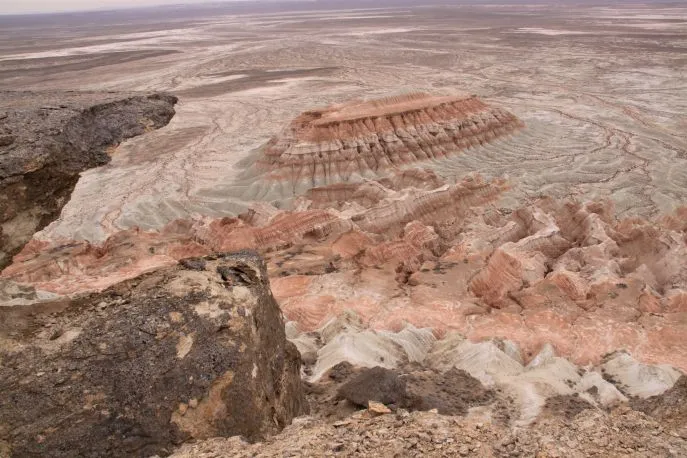 Je tiefer Sie in Yangi Kala fahren, desto näher kommen Sie der Karabogaz Gol. Durch das sumpfige Gelände können Sie nicht bis zu dieser abgeschlossenen Bucht am Kaspischen Meer gelangen, aber die Klippen können Sie aus allen Perspektiven bewundern – sowohl aus dem Jeep als auch zu Fuß, für diejenigen, die ein Stück wandern möchten. Der Name Karabogaz Gol bedeutet „Schwarze Mündung“ und das Wasser hat einen Salzgehalt von 35%, was es salziger als das Tote Meer (33%) macht.