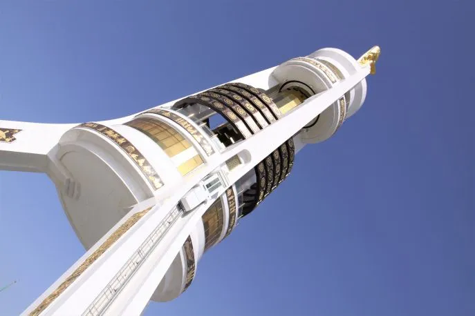 Besuch von Aschgabat mit ihren bunten Märkten und Monumenten.