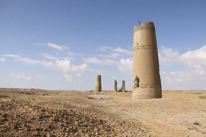 Dehistan, historisch auch bekannt als Misrian, war eine Stadt, die an den Ufern des Flusses Etrek lag und während der Zeit der Seidenstraße florierte. Sie war besonders wichtig für Kunya Urgench und Merw, da sie Khorezm mit Persien und den arabischen Ländern verband. Die Ruinen der Stadtmauern sowie die zwei 20 Meter hohen Minarette und das 18 Meter hohe Moscheeportal mit dem Namen Khorezmshah Mohamed (1200-1220) erinnern an diese Zeit.