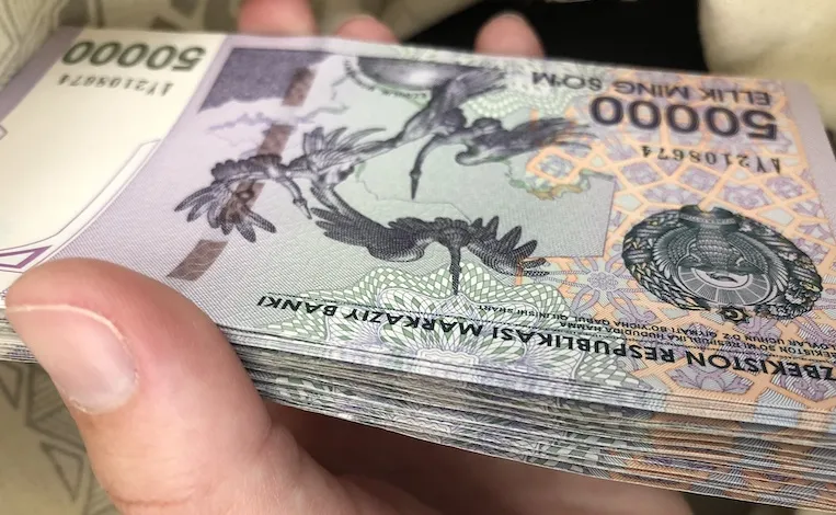 Die offizielle Währung Usbekistans ist der Usbekistanische Som (UZS). Banknoten werden häufig verwendet und sind in verschiedenen Werten erhältlich, während Münzen seltener vorkommen. In größeren Städten wie Taschkent und Samarkand stehen Geldautomaten (ATMs) zur Verfügung, an denen Besucher Geld abheben können, obwohl dies manchmal nur mit bestimmten internationalen Zahlungskarten, wie Visa und Mastercard, möglich ist. Es ist ratsam, Bargeld bei sich zu haben, da Geldautomaten in abgelegenen Gebieten selten sein können und nicht immer zuverlässig funktionieren. Wechselstuben sind in größeren Städten und an Flughäfen vorhanden, wo Euro und US-Dollar leicht umgetauscht werden können. Kreditkarten werden in großen Hotels und Restaurants in städtischen Gebieten häufig akzeptiert, aber in kleineren Städten und Dörfern sind Bargeldzahlungen die Norm.