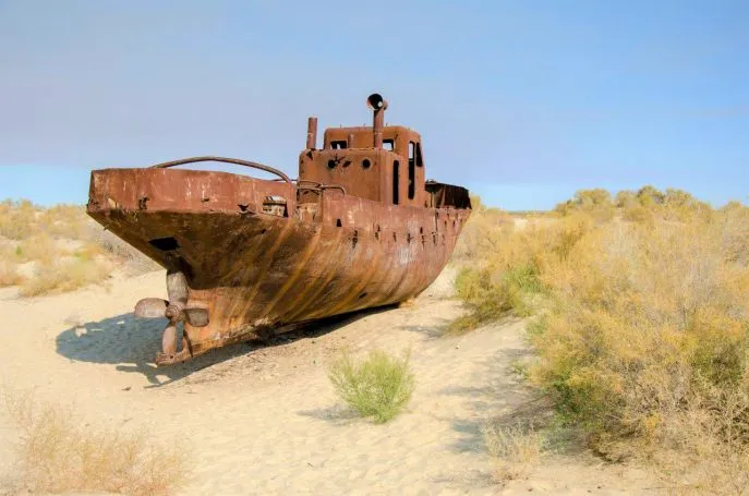 Sie machen sich auf den Weg, um die Umgebung des Aralsees zu erkunden. Der Aralsee liegt an der Grenze zwischen Kasachstan und Usbekistan. Bevor der See verschwand, war dies der viertgrößte See der Welt und umfasste Häfen, Fischzuchten, Fischerboote und 34 Fischarten. Der Aralsee begann in den 1960er Jahren, sich zu verflachern, als das Wasser der Flüsse, die in den See mündeten, in die Bewässerungsanlagen geleitet wurde. 1989 trennte sich der Aralsee in zwei isolierte Reservoirs: den kleinen Aralsee in Kasachstan und den großen Aralsee in Usbekistan. Im Jahr 2003 betrug die Fläche des Aralsees etwa ein Viertel des Originals und das Volumen des Salzwassers etwa 10%. Heute hat sich anstelle des Wassers die Aralkum-Sand- und Salz-Wüste mit einer Gesamtfläche von 38.000 km² gebildet.