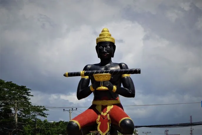 Sie lernen einen Dorfbewohner kennen, steigen an Bord eines traditionellen hölzernen Fischerboots und unternehmen eine schöne Fahrt auf dem Sangke-Fluss. Entspannen Sie und lassen Sie das Leben am Ufer an sich vorbeiziehen. Nach der Bootsfahrt fahren Sie wieder zurück in die Stadt. Unterwegs besichtigen Sie eine Statue aus alten Gewehren und den Tempel der Weißen Elefanten.