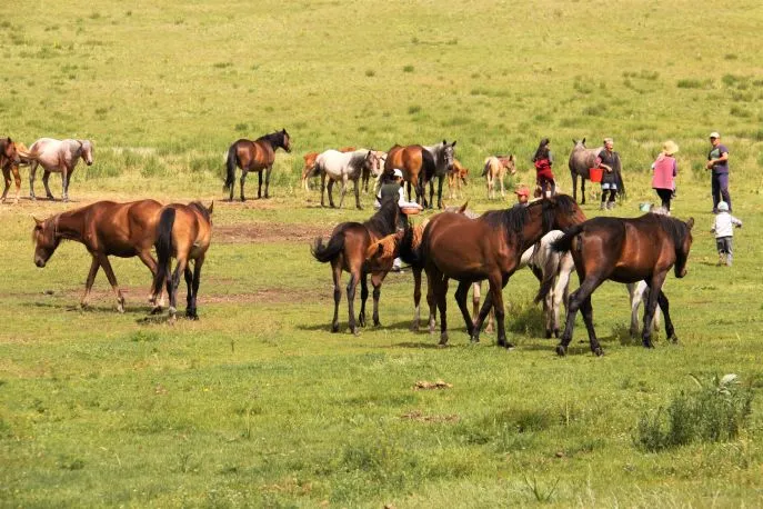 Ein freier Tag am wunderschönen Son Kul-See. Genießen Sie die schöne Natur mit dem See, den grünen Wiesen und den schneebedeckten Berggipfeln. Machen Sie einen Spaziergang entlang der Jurten, wo Sie sicherlich eingeladen werden, einen Blick hineinzuwerfen. Es wird Ihnen nicht entgehen, eine Tasse 'Kumis' mit zu trinken. Diese fermentierte Pferdemilch ist das Nationalgetränk des Landes.