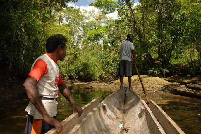 Nachdem Sie in Wakua angekommen sind, steigen Sie auf eine motorisierte 'Prau' um und fahren stromaufwärts den Fluss durch die Mangrovenwälder. Nach einer Stunde auf dem Wasser steigen Sie aus und wandern noch eine Stunde in den Dschungel von Badi Gaki, wo sich Ihr Resort befindet.