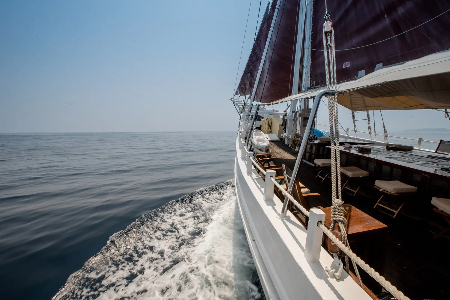 Tagsüber können Sie die Inseln besuchen und es werden verschiedene Aktivitäten unternommen. Abends wird weiter gesegelt. Sie haben immer Ihr eigenes privates Zimmer, um sich zurückzuziehen; eine entspannende Art zu reisen. Während des Segelns können Sie in einem der bequemen Liegestühle sitzen und beobachten, ob irgendwo Delfine aus dem Wasser springen.