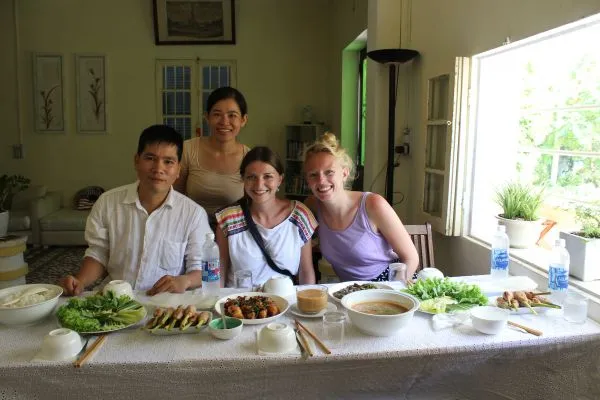 Am Morgen fahren Sie zum Dong Ba-Fluss, einem Seitenarm des Parfümflusses, für ein Treffen mit Herrn Thanh aus Hue. Als leidenschaftlicher Koch arbeitete er während seines einjährigen Aufenthalts in den USA in einem vietnamesischen Restaurant. Dort sammelte er viel Wissen über die westliche Küche und Kultur. Heute ist er für das tägliche Kochen seiner Familie verantwortlich und bricht damit mit der vietnamesischen Tradition, die Küchentätigkeiten meist den Frauen zuschreibt. Gemeinsam mit Herrn Thanh spazieren Sie zum Dong-Ba-Markt, wo Sie die benötigten Zutaten für den Kochkurs an einem der vielen authentischen Stände einkaufen. Zurück bei seinem Haus beginnt die Kochstunde mit der Zubereitung typischer Gerichte aus Hue. Zusammen mit Herrn Thanh und seiner Frau bereiten Sie unter anderem „Nem Lui“ zu: eine Frühlingsrolle gefüllt mit Schweinehackfleisch, dazu die passende süße Erdnusssauce, eine Tomaten-Ananas-Suppe, Bananensalat, gefüllte Tintenfische und mehr! Genießen Sie gegen Mittag das Mittagessen auf dem Balkon des Hauses und führen Sie ein nettes Gespräch mit der Familie.