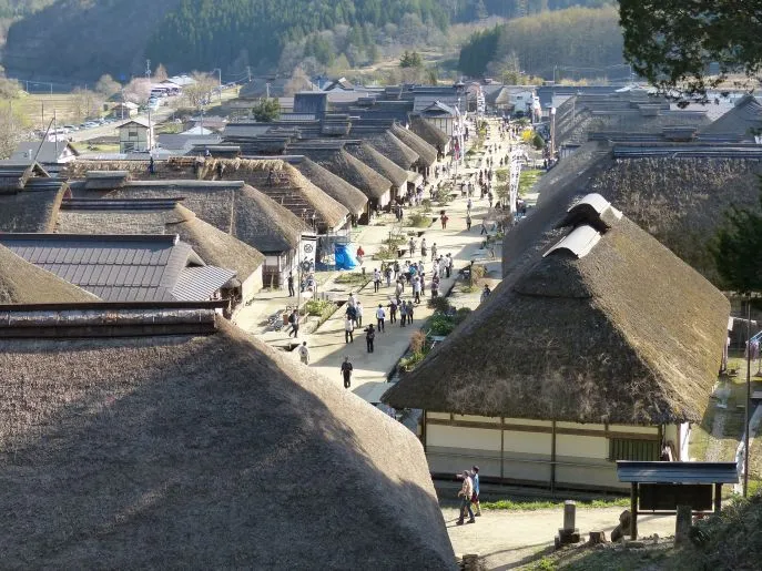 Ouchi-juku ist eine Poststadt, die in der Edo-Zeit (1640) gegründet wurde. Der Weg durch dieses Dorf war eine wichtige Verbindungsstraße für die Samurai, die von und nach Edo reisen mussten. Hier kaufte man Reis und Lebensmittel und konnte sich in einer der vielen Herbergen ausruhen.