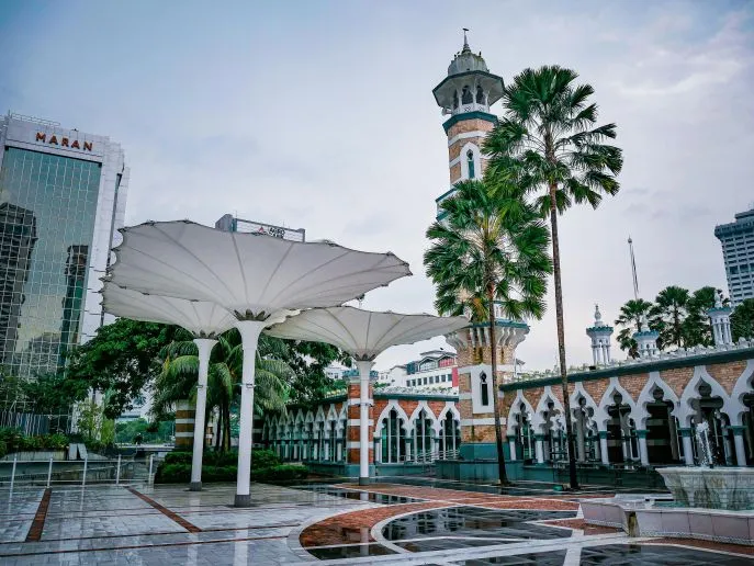 Am Platz finden Sie außerdem das ikonische Sultan Abdul Samad Gebäude und den prachtvollen alten Bahnhof im maurischen Stil. Nicht weit davon entfernt steht die erste Ziegelmoschee von Kuala Lumpur, die Masjid Jamek. Hier fließen die Flüsse Gombak und Klang zusammen – der Ort, an dem Kuala Lumpur einst gegründet wurde.