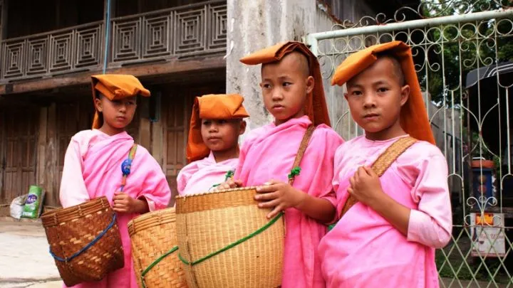 Hallo Miss, Hallo Miss … Überall auf der U Bein-Brücke werde ich begrüßt. Ein wunderschöner Ort, den auch die Burmesen gerne besuchen. Der Guide erzählt mir, dass die Brücke 1849 erbaut wurde und letzten Winter teilweise aufgrund des hohen Wasserstands eingestürzt ist. Etwas unsicher gehe ich also über diese Brücke. Gegen 10:30 Uhr eilen wir nach Amarapura, um zu sehen, wie dutzende junger Mönche aus der Klosterschule in Reihen die Straße entlanggehen, um ihr Essen in ihren Bettlaken entgegenzunehmen, wie es im burmesischen Buddhismus vorgeschrieben ist. Ein interessantes Phänomen, das ich zuvor noch nie gesehen habe. Ich schaue in die Küche, wo mich der Gestank, die Hunde und die Fliegen begrüßen. Am Straßenrand sehe ich mehrere Kinder mit Schalen auf dem Schoß sitzen, ich frage den Guide, was sie dort machen? Er erzählt mir, dass diese armen Kinder die Reste erhalten. Glücklicherweise habe ich noch ein paar Süßigkeiten und Buntstifte in meiner Tasche und gebe sie den Kindern, woraufhin ein großes Lächeln erscheint.