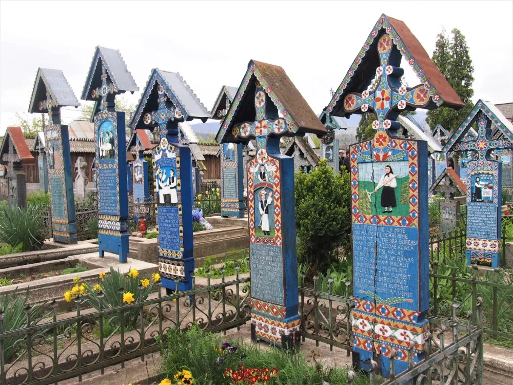 Der erste Halt ist Săpânța, die Heimat einer der bemerkenswertesten Sehenswürdigkeiten Rumäniens, nämlich dem einzigartigen „Fröhlichen Friedhof“ von Ion Stan Pătraș. Pătraș war ein örtlicher Künstler und Dichter, der in den 1930er Jahren begann, eine Reihe dekorativer Kreuze und Grabsteine zu schnitzen, die in Worten und Bildern das Leben der Verstorbenen widerspiegelten. Diese bunten Grabsteine waren mit Bildern und witzigen Anekdoten bedeckt und verliehen dem Ort ein Gefühl von Feierlichkeit statt von Trauer – eine Tradition, die bis heute von Pătraș' Schülern fortgesetzt wird.
