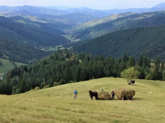 Anschließend wandern Sie durch Wiesen und Wälder in Richtung des Dorfes Runc, einem kleinen Weiler, der von dichten Nadelwäldern umgeben ist und die Heimat von Bären und Wölfen ist. Er bietet auch Zuflucht für einige der letzten traditionellen Bauerngemeinschaften, die in Europa geblieben sind.