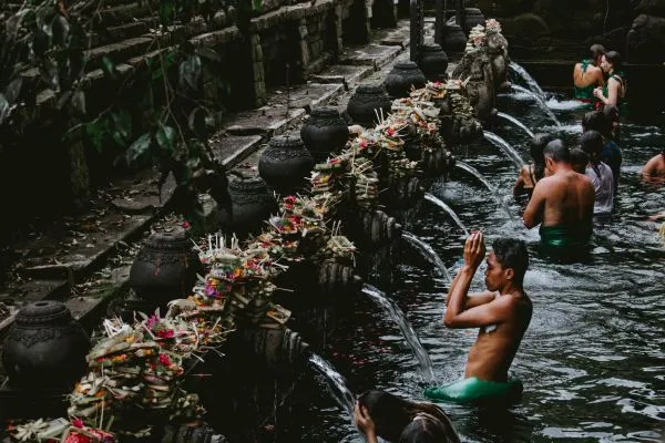 Bali ist die einzige hinduistische Insel Indonesiens und das erkennt man überall; von riesigen Tempelanlagen bis hin zu den kleinen Hausaltären, und überall bringen Menschen Opfer dar, wie in Tirta Empul oder Gunung Kawi, mit täglichen Opfern und Zeremonien.