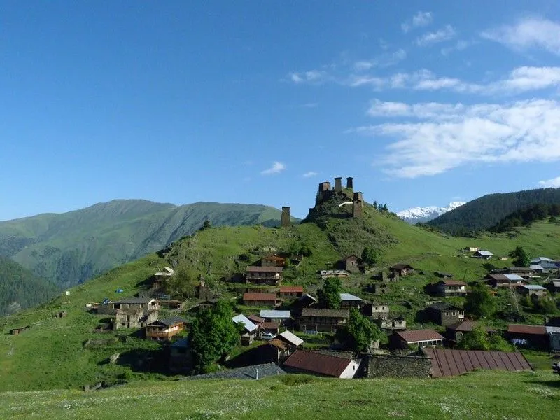 Das ist etwas übertrieben, es handelt sich vor allem um eine wunderschöne Bergstraße, die Sie aus der Ebene durch eine üppig bewachsene Schlucht immer höher bringt, bis Sie den 2900 Meter hohen Alano-Pass erreichen. Hier haben Sie einen herrlichen Blick auf die schneebedeckten Gipfel des Kaukasus. Diese Gipfel bilden die Grenze zu den berüchtigten, aber so schönen Republiken Dagestan und Tschetschenien. Nach dem Abstieg vom Pass fahren Sie nach Tusheti, einer unglaublich schönen Bergregion. Grüne Alpenwiesen, schneebedeckte Berggipfel und dazwischen die jahrhundertealten Dörfer von Tusheti mit ihren charakteristischen Steinhäusern und imposanten Wachtürmen.