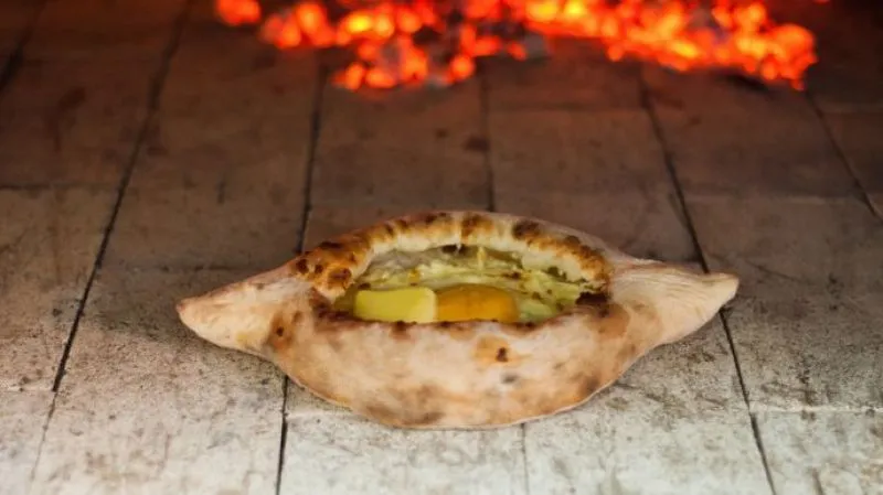 Khachapuri - Käse, der in Teig gebacken wird. Je nach Käse und Region gibt es verschiedene Arten von Khachapuri - Imeruli, Megruli, Acharuli und Achma.