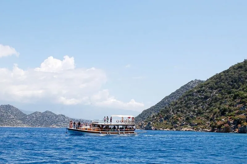 Der Hafen von Kaş ist ein großartiger Ort, um eine Bootstour entlang der tuerkisfarbenen Küste zu unternehmen. Während dieses Tagesausflugs sehen Sie interessante versunkene Stadt-Ruinen auf der Insel Kekova. Hier lebten vor langer Zeit Menschen. Versunkene Häuser, Treppen, die ins Meer führen, Kirchenmauern und Ruinen unter Wasser zeugen von einem früheren Leben. Die Bootstour geht weiter mit Badepausen in den ruhigen Buchten der Insel Kekova. Vielleicht zeigen sich sogar die Meeresschildkröten.