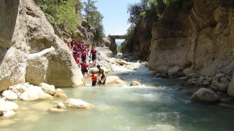 Lassen Sie Ihre Sinne beleben und Ihre Seele aufleben. Die Schluchten der Tuerkei bieten einen Spielplatz für alle. Canyoning ist ein Abenteuertrip, bei dem Sie durch eine Schlucht wandern, klettern, springen und abseilen müssen. Nass, wild und absolut unvergesslich! Tauchen Sie in das kühle, klare Wasser mit natürlichen Rutschen und wunderschönen Wasserfällen ein. Eine großartige Gelegenheit, der Hitze von Antalya zu entkommen.