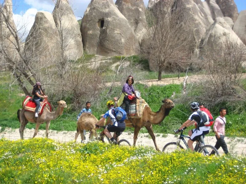 Von Ihrem Sattel aus beobachten Sie, wie verschiedene Heißluftballons über Ihnen aufsteigen. Die Täler bieten eine epische Landschaft mit vielen Radwegen für unterschiedliche Niveaus. Gemeinsam mit dem Guide können Sie entscheiden, wohin Sie basierend auf Ihrem Fähigkeitsniveau fahren möchten. Es gibt verschiedene Radwege im Rosental, im Liebestal, im Zemi-Tal und im Schwerttal.