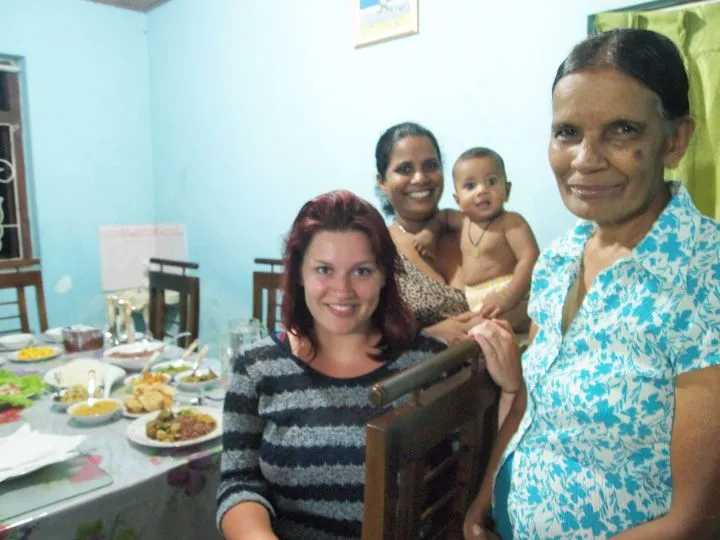 Ich habe mich sehr auf meinen Besuch bei einer Familie in der Nähe von Galle gefreut. Mein Gastgeber Ranga hatte mir bereits den Treffpunkt und seine Beschreibung per E-Mail geschickt. Eine Art Blind Date also. Ich nähere mich dem Gemüsestand an der Kreuzung und suche nach einem Mann mit einem orangefarbenen Shirt. Ich sehe ihn sofort stehen, ich kann ihn nicht verfehlen! Als ich bei seiner Hütte ankomme, entschuldigt sich Ranga für ihr einfaches Zuhause. Ich finde es geradezu wunderschön. Ich habe nicht lange Zeit, um das kleine, offene Wohnzimmer mit all den Buddha-Statuen, Hochzeitsfotos, dem Hausaltar und all den schönen Dekorationen zu betrachten, denn eine ganze Delegation Frauen kommt aus der Küche heraus. Etwas schüchtern starren sie mich an, also gebe ich jedem die Hand und versuche ihnen zu vermitteln, wie schön ich ihr Zuhause finde und wie geehrt ich bin, ihr Gast zu sein! Inzwischen kommen noch mehr Verwandte herein. Ein Bruder von Ranga kommt mit seiner Familie vorbei, um mich im Dorf willkommen zu heißen. Er stellt sich als Politiker des Dorfes heraus und überreicht mir ein Geschenk. Ich bekomme einen wunderschön dekorierten Elefanten in einer großen Glaskiste überreicht. Wunderschön! Und während ich meine Dankbarkeit zeige, schießt mir meine übervolle Reisetasche durch den Kopf.. wie werde ich das nur transportieren?