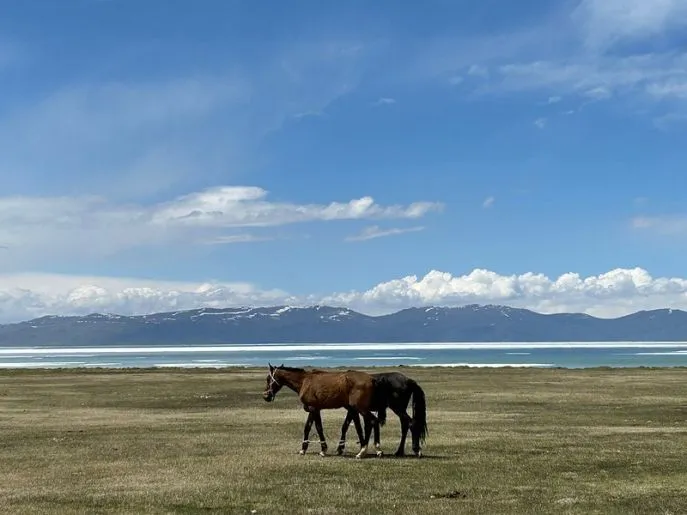 Son Kul ist ein idealer Ort, um das Leben der kirgisischen Nomaden zu beobachten, Wanderungen zu unternehmen oder vielleicht ein Pferd zu mieten. Der große, fischreiche See ist zum Schwimmen wenig geeignet und schwer zugänglich, da die Umgebung recht sumpfig ist. Sie übernachten in der Nähe des Sees in einem Yurt-Camp mit gemütlich eingerichteten Jurten und einfachen (geteilten) Toiletten und Duschen.