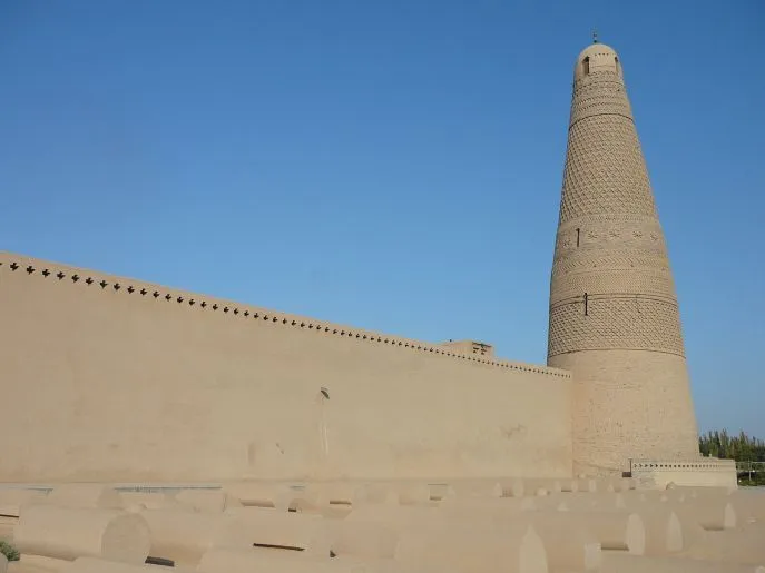 Nach Ihrer Ankunft besuchen Sie das Emin-Komplex, berühmt für seinen Ziegel-Minarett mit figürlichen Mustern. Etwas außerhalb von Turpan liegt das Grape Valley, ein Tal voller Weinberge und traditioneller uigurischer Dörfer mit staubigen Straßen, die im Schatten der Weinreben liegen. In diesem Grape Valley entstehen immer mehr Guesthouses, und wir werden versuchen, hier zu übernachten – ruhiger, kühler und authentischer als im Zentrum von Turpan. Selbstverständlich können Sie durch die Weinberge spazieren.