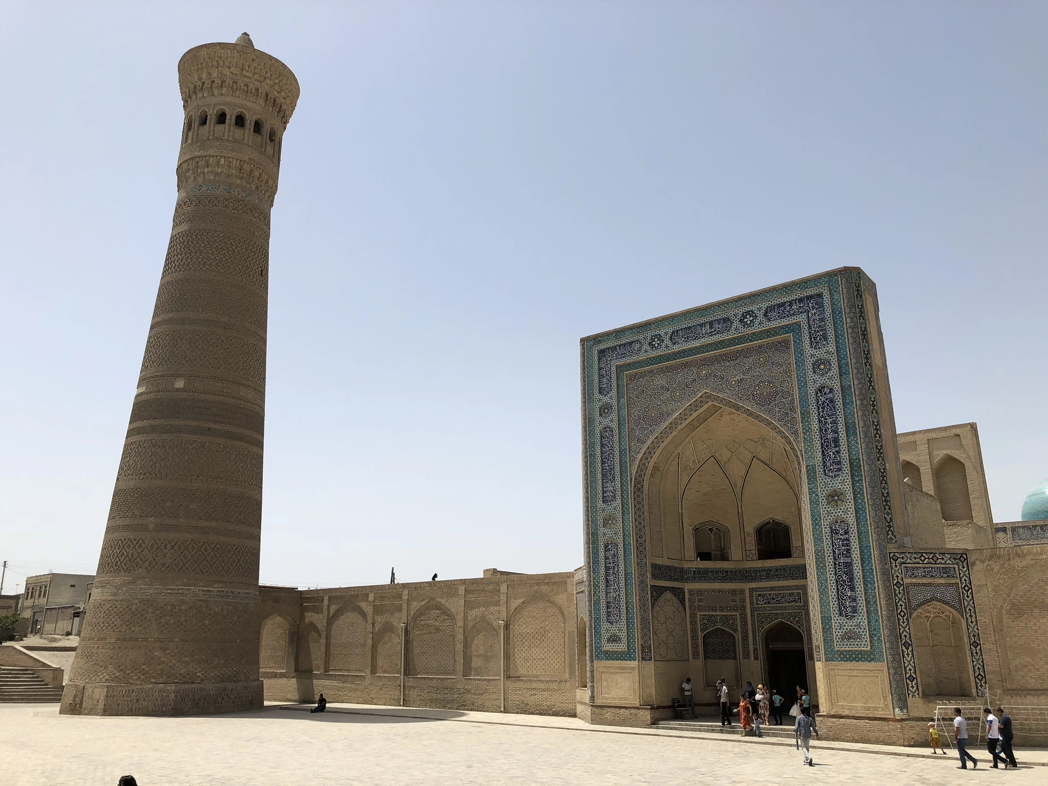Das Poi Kalyan-Ensemble bildet das religiöse Herz der Stadt. Die 1514 errichtete Kalyan-Moschee ist die zweitgrößte Moschee Zentralasiens und bietet Platz für bis zu 12.000 Gläubige. Gegenüber liegt die beeindruckende Mir-i-Arab-Madrasa, erkennbar an ihren zwei türkisfarbenen Kuppeln. Nicht weit dahinter finden Sie die Ulugh-Bek-Madrasa und die Abdul-Aziz-Madrasa, beide Beispiele feiner islamischer Architektur.